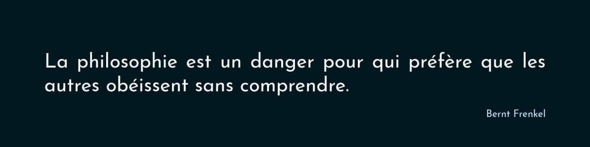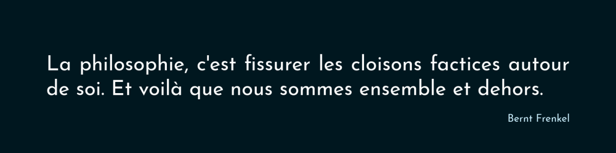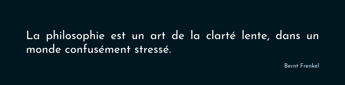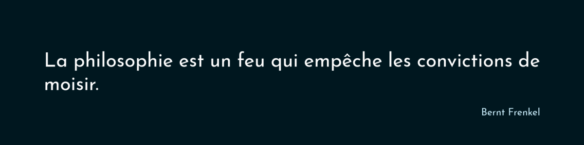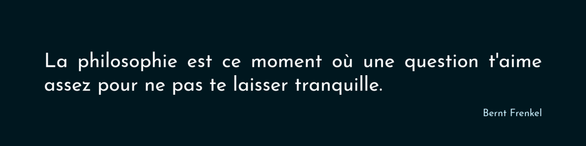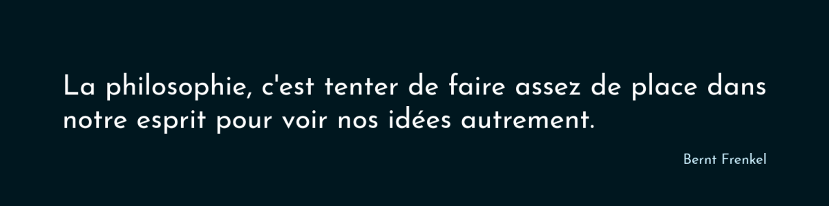 « En arrivant au cours, je me suis demandé pourquoi je m’étais inscrite à un cours de philo, dans un monde où le temps est précieux et où je ne connaissais ni le sujet ni les personnes. Pourtant, à la fin de chaque séance, j’étais ravie d’avoir pris ce temps pour moi, et j’en ressortais avec l’envie de débattre de plein de sujets abordés. »