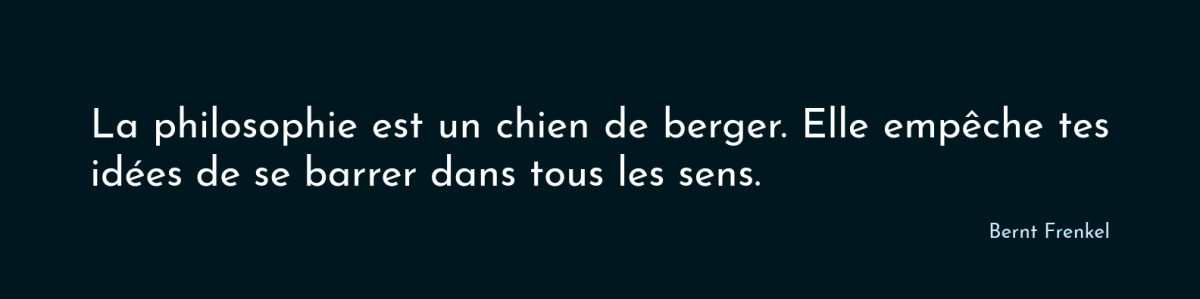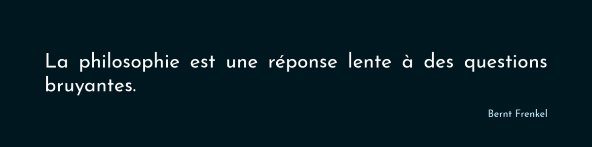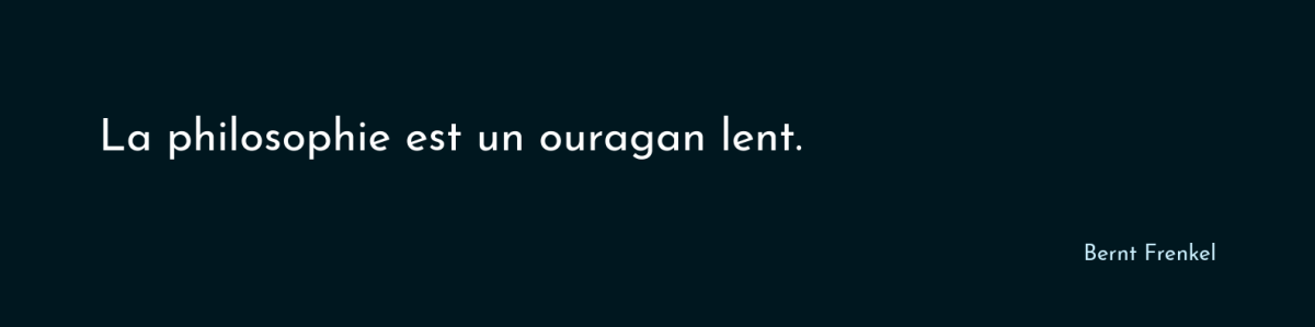 Ce site, je le souhaite comme une introduction à la philosophie. Dans un premier temps, il s'organise autour du projet La philo en 1 an, une introduction à la philosophie en 144 questions. Et mes conférences d'appartement.